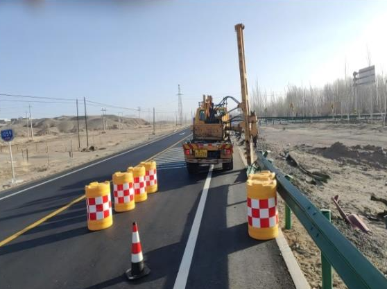 为及时消除风险,乌拉特中旗边防公路养护所接报后迅速响应,第一时间制定施工方案,调配专业机械设备与技术骨干,采用“机械为主、人工为辅”的作业模式开展护栏更换工作。施工过程中,养护人员先以专用机械精准拆除受损护栏,清理基础废渣,随后按标准吊装并固定新护栏,确保基础牢固、防护达标。经数小时紧张作业,原本破损残缺的护栏焕然一新,此次护栏更换作业,既显著提升了边防公路安全防护效能,又切实优化了路域通行环境,为保障过往车辆安全筑牢了防线。