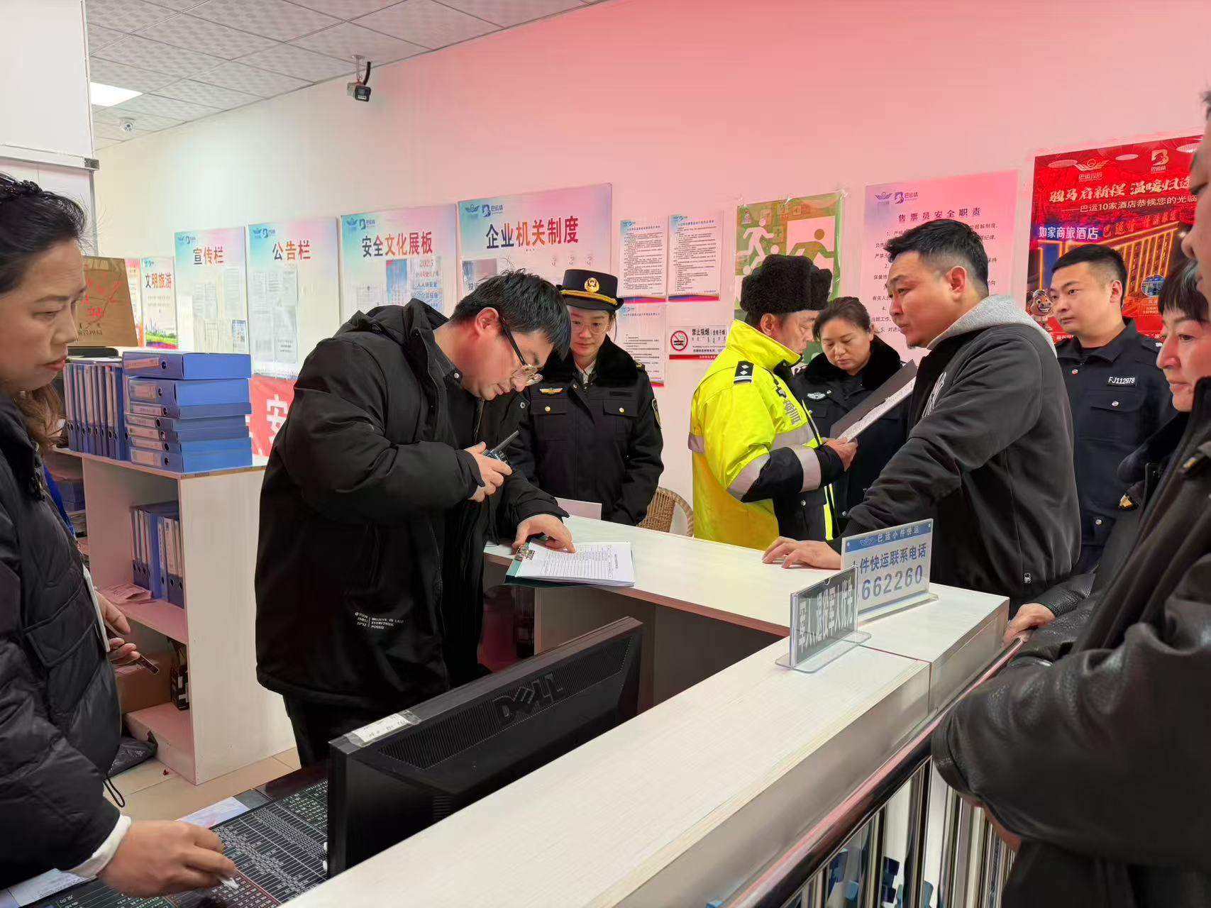 在旗客运站,检查组对春运准备工作进行全面核验,查看旅客进站安检流程、车辆安全例检台账、站内消防设施、应急疏散通道等。检查组要求客运站必须严格执行“三不进站、六不出站”规定,保障旅客出行安全有序。在对货运、危货企业的检查中,检查组细致核查了企业春运安全工作方案、企业安全管理制度、驾驶员从业资格与日常培训档案、车辆动态监控系统运行等内容。