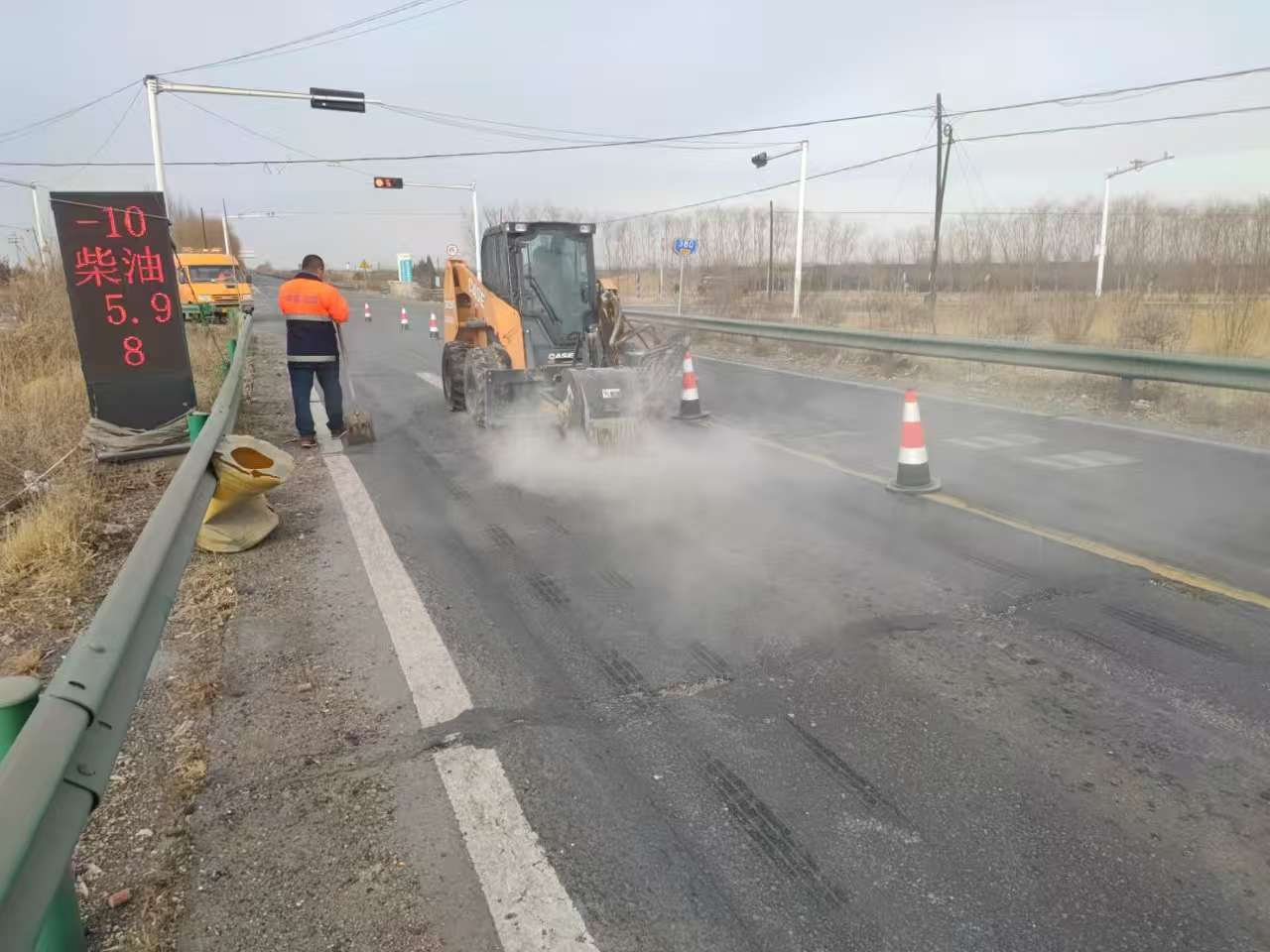 施工作业期间,养护生产人员选择车流相对较小的时段,采取“分段实施、快速推进”模式,开展集中洗刨攻坚。施工现场严格执行施工区域安全布控规范,标志标牌、警示灯、防撞桶齐全,安全员全程值守疏导,既保证了作业安全,也有效维护了施工路段的有序通行。