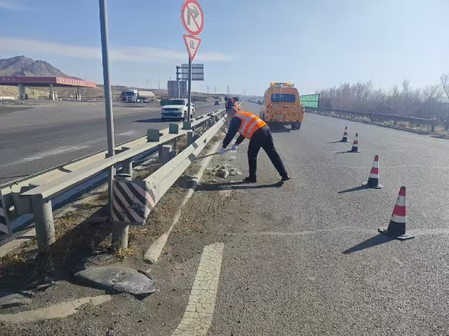 此次整治工作严格遵循“安全作业、规范操作、全面清理、不留死角”的原则,养护人员分工明确、协同配合,重点对中央隔离带内的枯草、枯枝、塑料袋、纸屑等各类杂物进行全面清理、逐一清运。针对部分路段杂草丛生、垃圾堆积等突出问题,采取“人工捡拾+集中清运”的模式,切实做到清理到位、整治彻底。作业期间,养护人员严格落实安全防护措施,在作业路段规范设置警示标志、合理布设安全锥桶,清晰划定作业区域,全程做好交通疏导,切实保障过往车辆及作业人员安全。同时,养护人员同步对沿线交通标志、护栏等附属设施进行细致排查,确保不留死角,不留盲区。