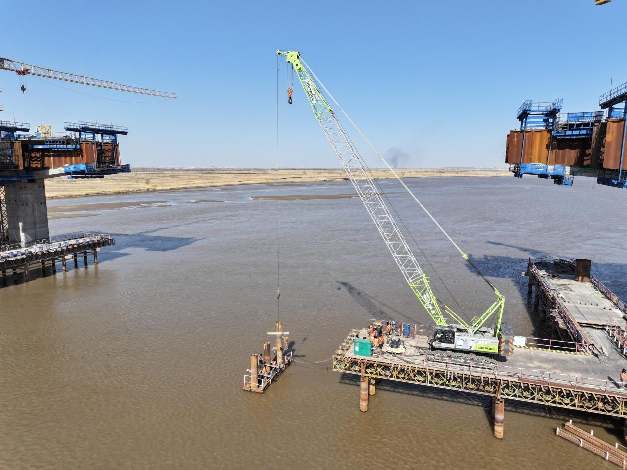 在黄河两岸的施工现场,机器轰鸣,吊臂林立,运输车辆往来穿梭,工人们正紧张有序地进行钢栈桥搭建、桥梁上部结构的施工等作业。为确保工程安全、优质、高效推进,项目部科学组织,倒排工期,在全面进行安全隐患排查和复工培训的基础上,进一步优化施工方案,合理调配人力与机械设备,全力保障各项工序紧密衔接。
