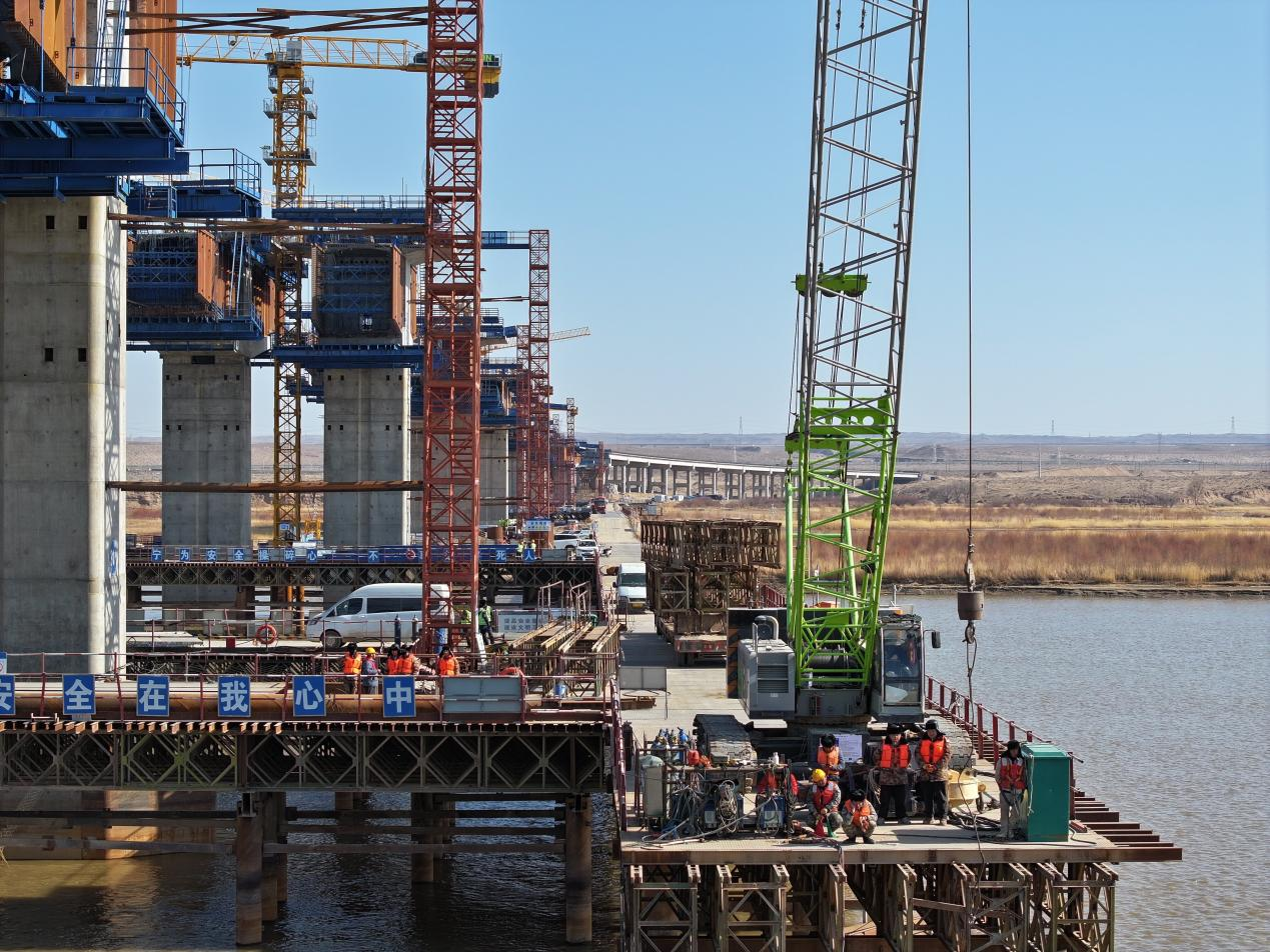 G110线磴口黄河大桥是内蒙古自治区重点工程,是连接黄河南北两岸的重要交通枢纽,其建成将对完善区域路网布局、促进沿线资源开发和经济社会协同发展具有重大意义。目前,全体参建人员正以“拼”的精神、“闯”的劲头,将春日盎然的生机转化为大干快上的施工实景,确保这一惠民工程如期竣工。(罗刘)