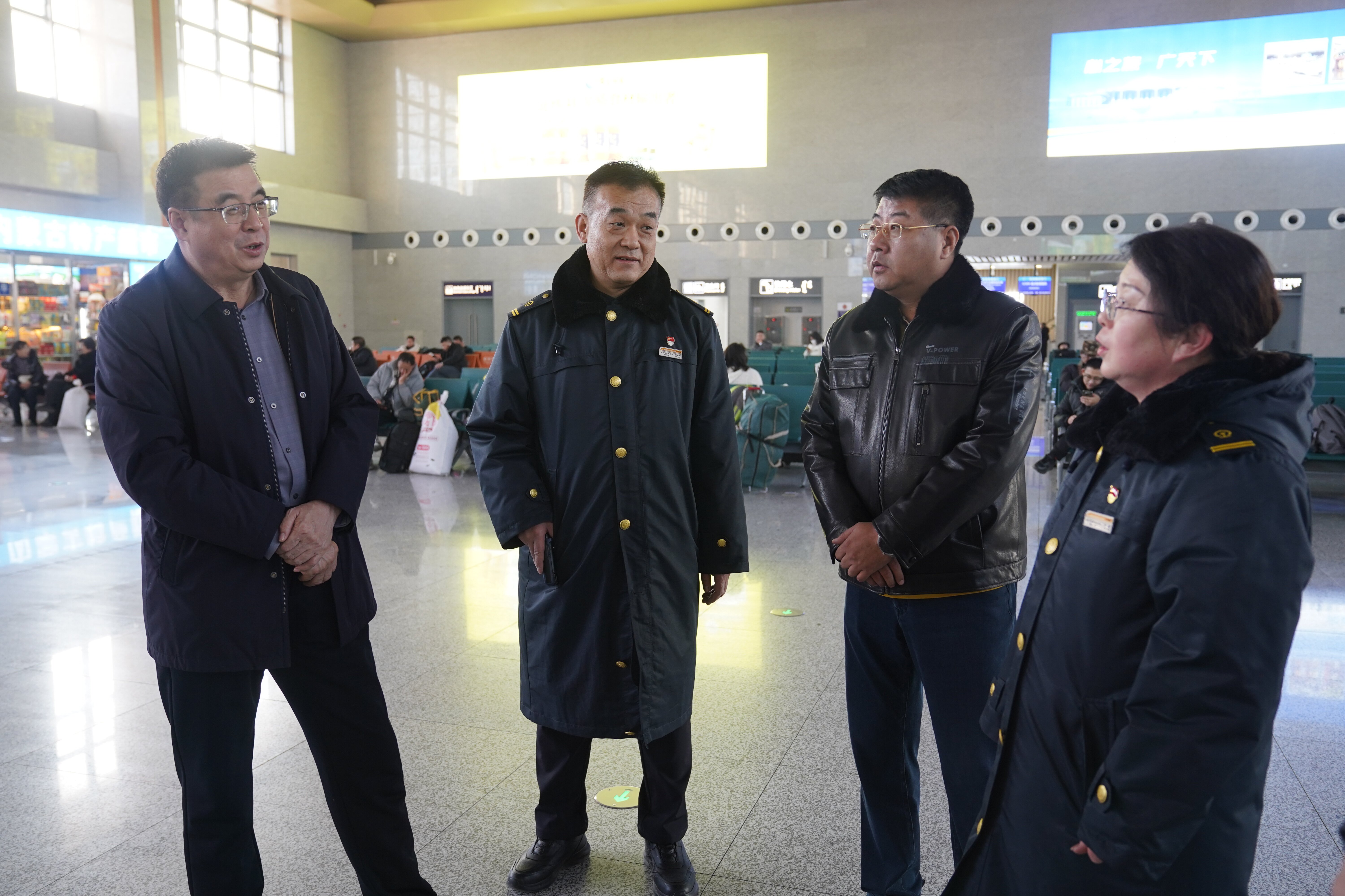 在巴彦淖尔站,贾振华实地查看候车大厅、进出站口、地下停车场、站前广场等重点区域,详细了解近期旅客流量、冬季便民服务举措及保通保畅相关措施等情况。贾振华对车站便民服务工作措施给予肯定。他指出,元旦、春节期间,客流将迎来集中高峰,作为城市重要的交通枢纽,巴彦淖尔站的安全运营与服务保障工作至关重要,要不折不扣、从严从实落实各项安全保畅措施,筑牢群众出行安全防线。