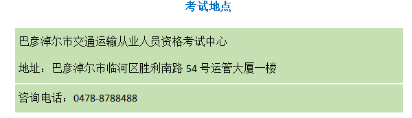 每周三(遇节假日顺延)组织考试,申请“自学直考”的考生持报考条件要求的相关材料到巴彦淖尔市临河区胜利南路运管大厦一楼交通运输从业资格考试中